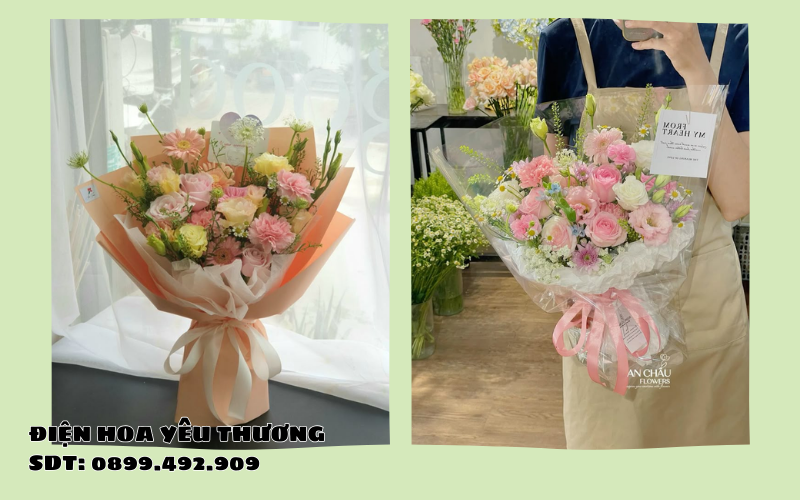Tone pastel nhẹ nhàng là lựa chọn tuyệt vời cho những ai yêu thích sự nữ tính, lãng mạn. Các bó hoa này thường kết hợp giữa hồng nhạt, tím, kem hoặc xanh baby, mang đến cảm giác dễ chịu, tinh tế. Tại các cửa hàng hoa tươi Gò Vấp, đây là kiểu bó hoa được yêu cầu nhiều nhất vào các dịp sinh nhật cho phái nữ.